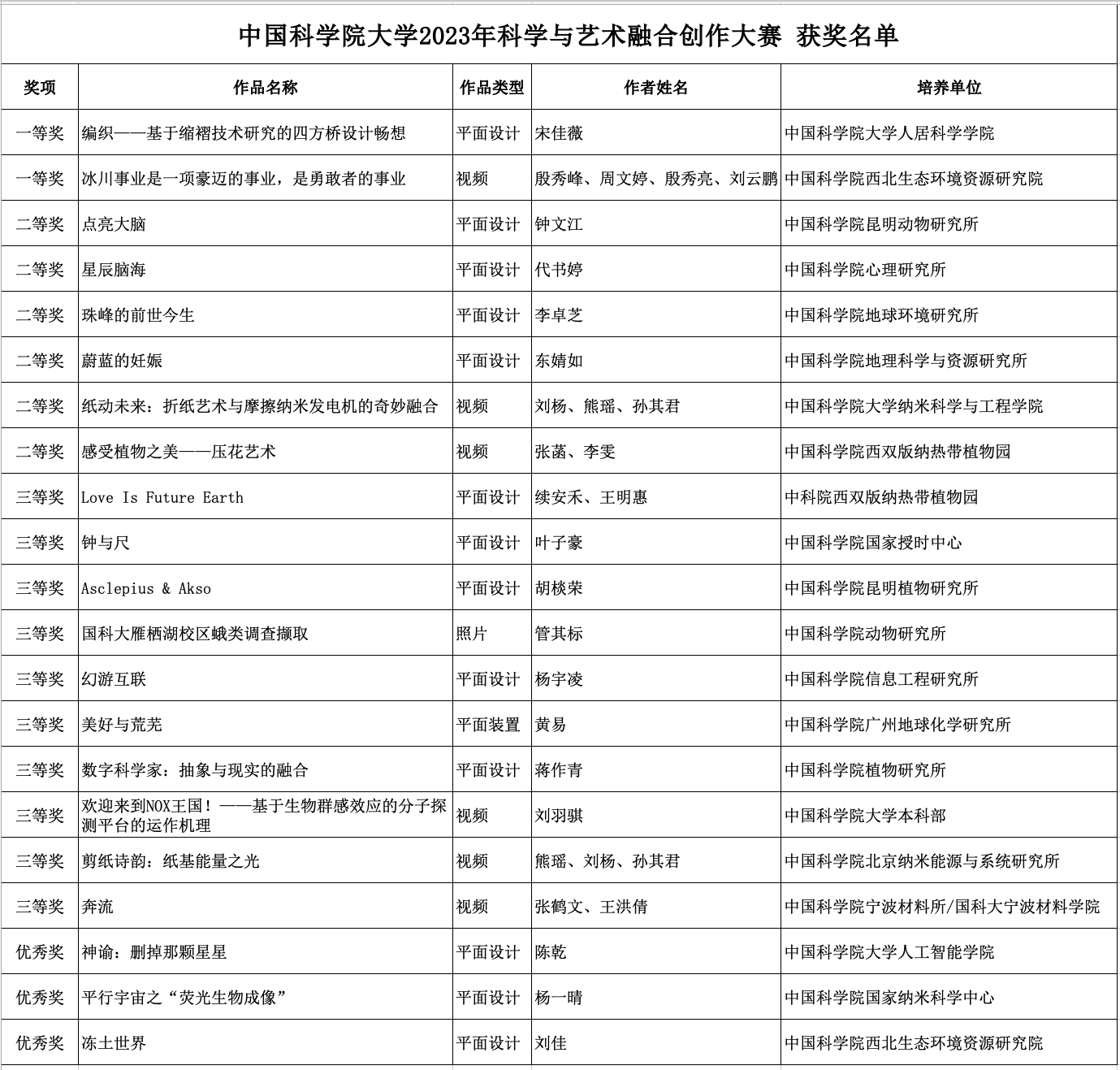 大赛邀请多位科学家、艺术家担任评委,最终评选出一等奖2名、二等奖6名、三等奖10名,优秀奖3名。